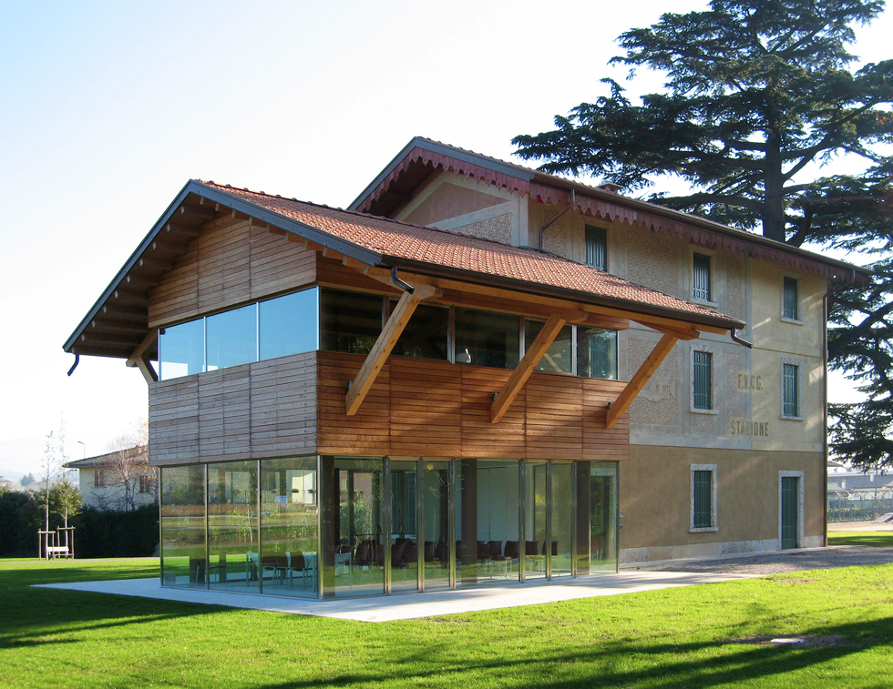 La ricostruzione della tettoia esterna, che diventa sala civica, è l’occasione di riportare a nuova vita la vecchia stazione ferroviaria.