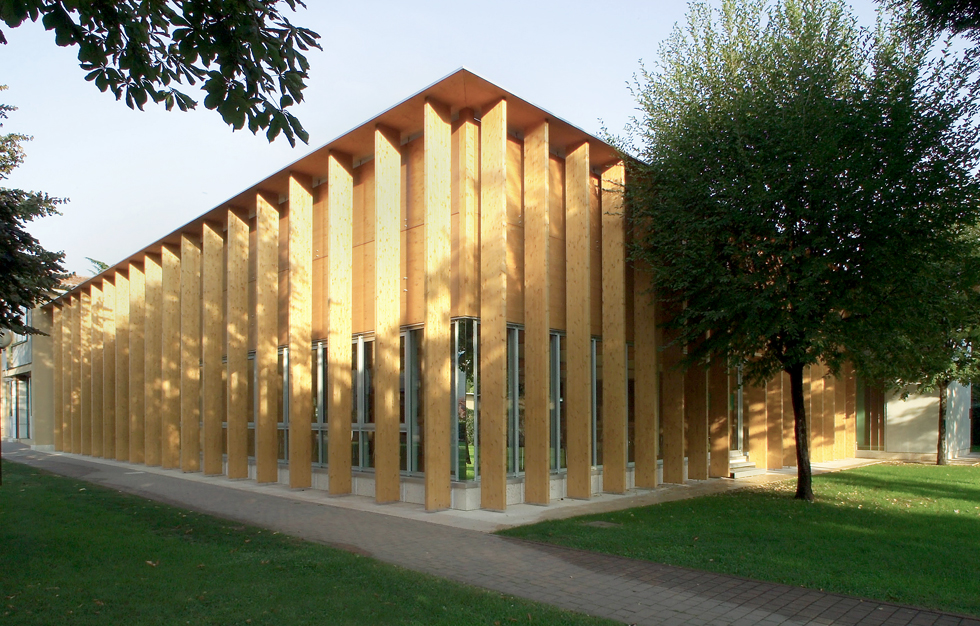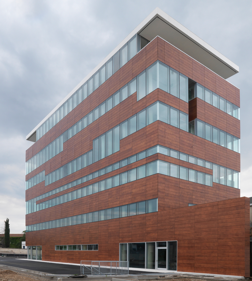 Per la prima volta in Veneto, è stata utilizzata la facciata a doppia pelle che media il rapporto tra interno ed esterno in termini climatici, acustici ed energetici.