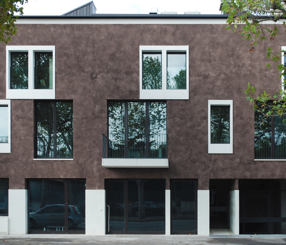 La nuova facciata riprende stilemi e allineamenti degli edifici vicini mantenendo così la continuità della cortina edilizia consolidata.