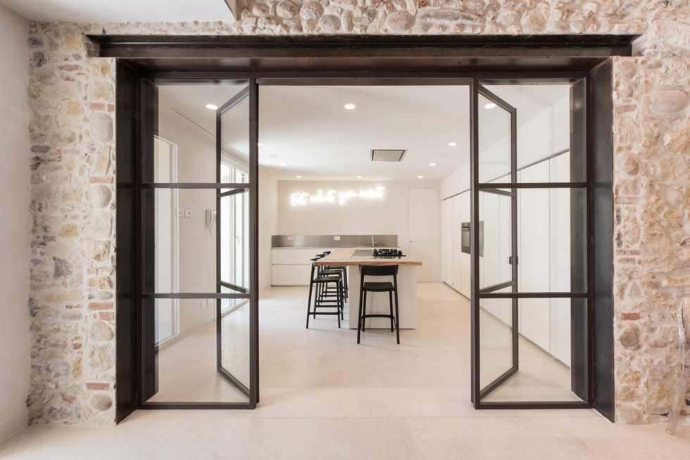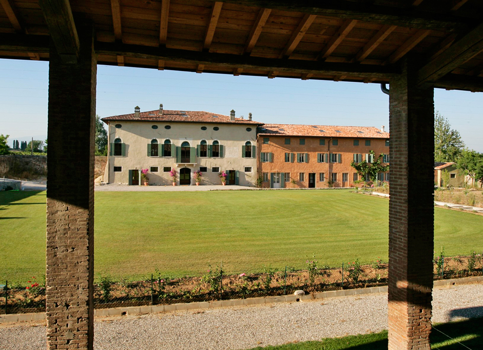 Nel recupero di una grande corte rurale situata nelle colline tra Verona e il lago di Garda il segno contemporaneo convive con il restauro conservativo.