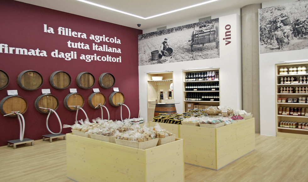Il punto vendita dei prodotti agricoli “dal produttore al consumatore”, è caratterizzato da immagini e le scritte che accompagnano i percorsi di vendita.