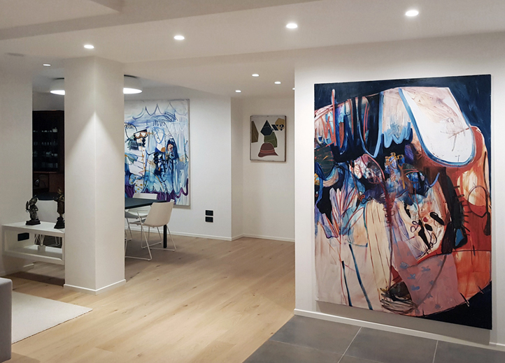 In un appartamento con vista sul Lago di Garda, le opere d’arte convivono con gli spazi del vivere quotidiano.