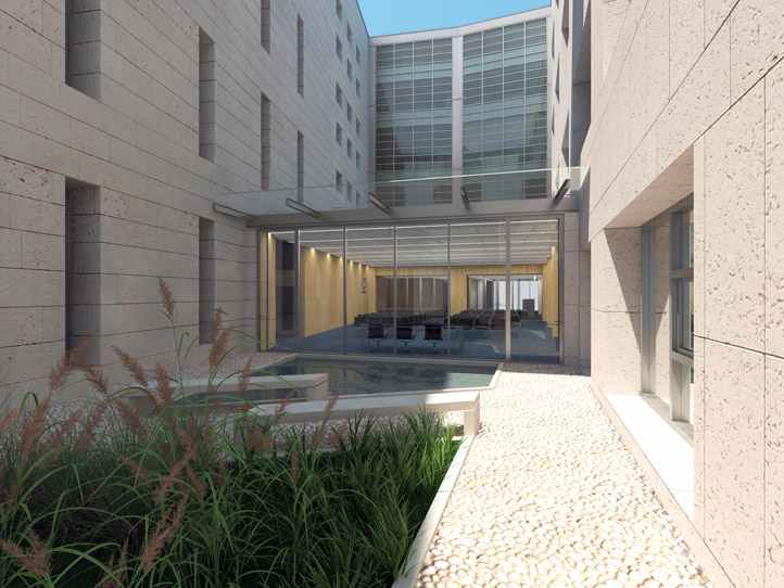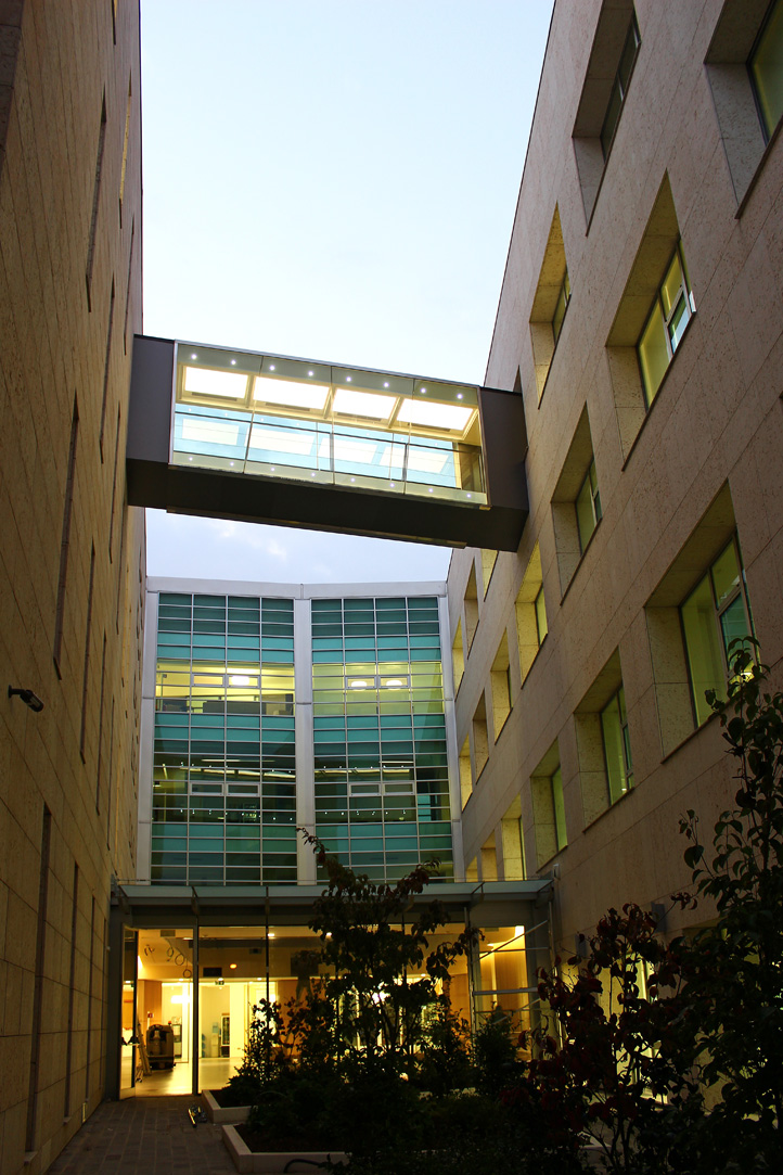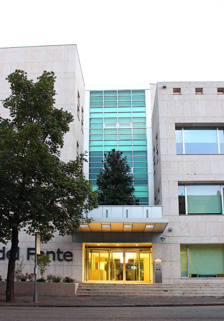 L’attuale edificio è il risultato di una ristrutturazione iniziata nei primi anni 2000 dell’ex sede Telecom degli anni ’70; le opere realizzate hanno profondamente modificato le caratteristiche estetiche, impiantistiche e distributive dell’intero blocco. Nel 2012 il gruppo assicurativo Arca Vita spa ha completato i lavori al fine della collocazione della propria sede centrale. L’edificio sviluppa complessivamente 6000 mq di uffici, call-center, sale riunioni, archivi, sala server e sala conferenze utilizzati quotidianamente da circa 400 persone. Esternamente i volumi sono stati completamente rivestiti con facciate ventilate in pietra locale che hanno esaltato la composizione a blocchi, regolarizzando le bucature per rendere funzionale l’immobile alle nuove esigenze funzionali. L’ingresso è stato collocato rialzato rispetto alla quota stradale di circa un metro, raggiungibile attraverso una scalinata e una rampa che definiscono l’attacco a terra. Nella corte interna è collocata la sala conferenze con soffitto in vetro protetto da frangisole. Al fine di collegare i vari blocchi e di garantire le corrette vie di esodo in caso di incendio sono state realizzate nuovi corpi scala e passerelle di collegamento in acciaio, vetro e lamiere microforate.