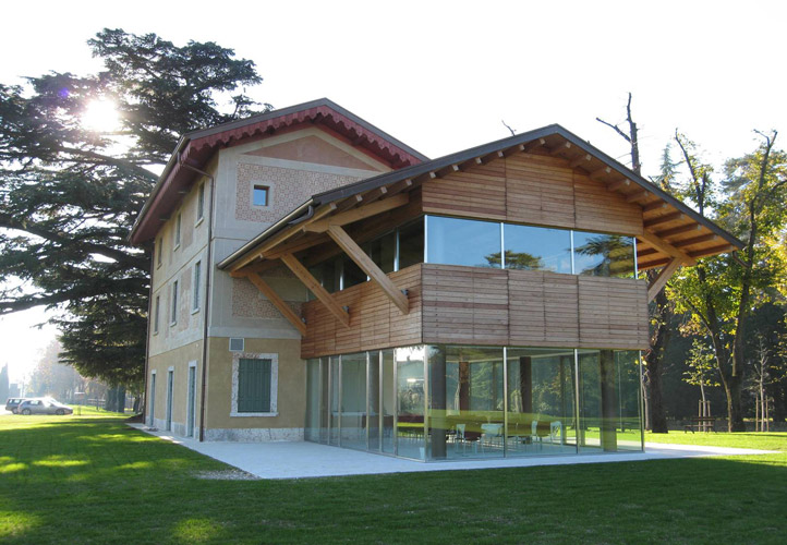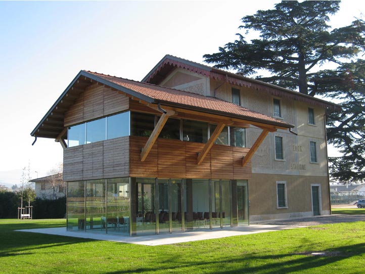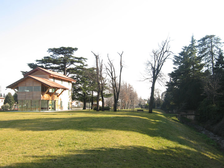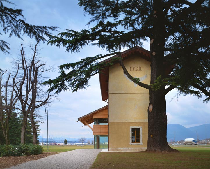 La realizzazione del Centro Culturale è stata l’occasione di riportare a nuova vita la vecchia stazione ferroviaria. Sull’edificio esistente si è operato con un preciso restauro ed è stata ricostruita con linguaggio contemporaneo la tettoia esterna andata da tempo distrutta utilizzando la caratteristica costruttiva originaria: elementi lignei a falde con capriate e saette a sorreggere grandi sbalzi. Al legno si contrappone la trasparenza del vetro che permette alle sale di aprirsi al paesaggio.