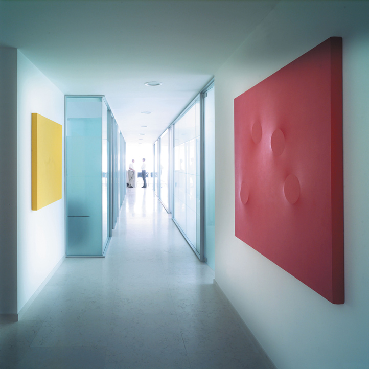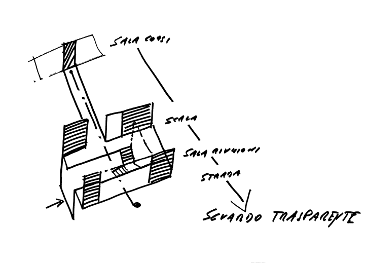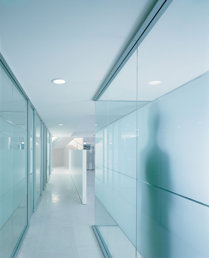 La ristrutturazione degli uffici ha posto come obiettivo la definizione dell’immagine dell’agenzia immobiliare. Le affinità a una galleria d’arte sono subito dichiarate poiché non vengono messe in atto le abituali strategie di vendita, ma si invita il cliente ad entrare in un ambiente concepito come contenitore dove convivono le normali attività lavorative con eventi d’arte, musica, fotografia, scultura e performance artistiche. Nella costante ricerca della trasparenza sono state aperte finestre di grandi dimensioni per proiettare all’esterno i luoghi di lavoro. La strategia progettuale è rendere lo spazio interno indefinito attraverso pareti serigrafate e luce posta nei punti di fuga prospettici.