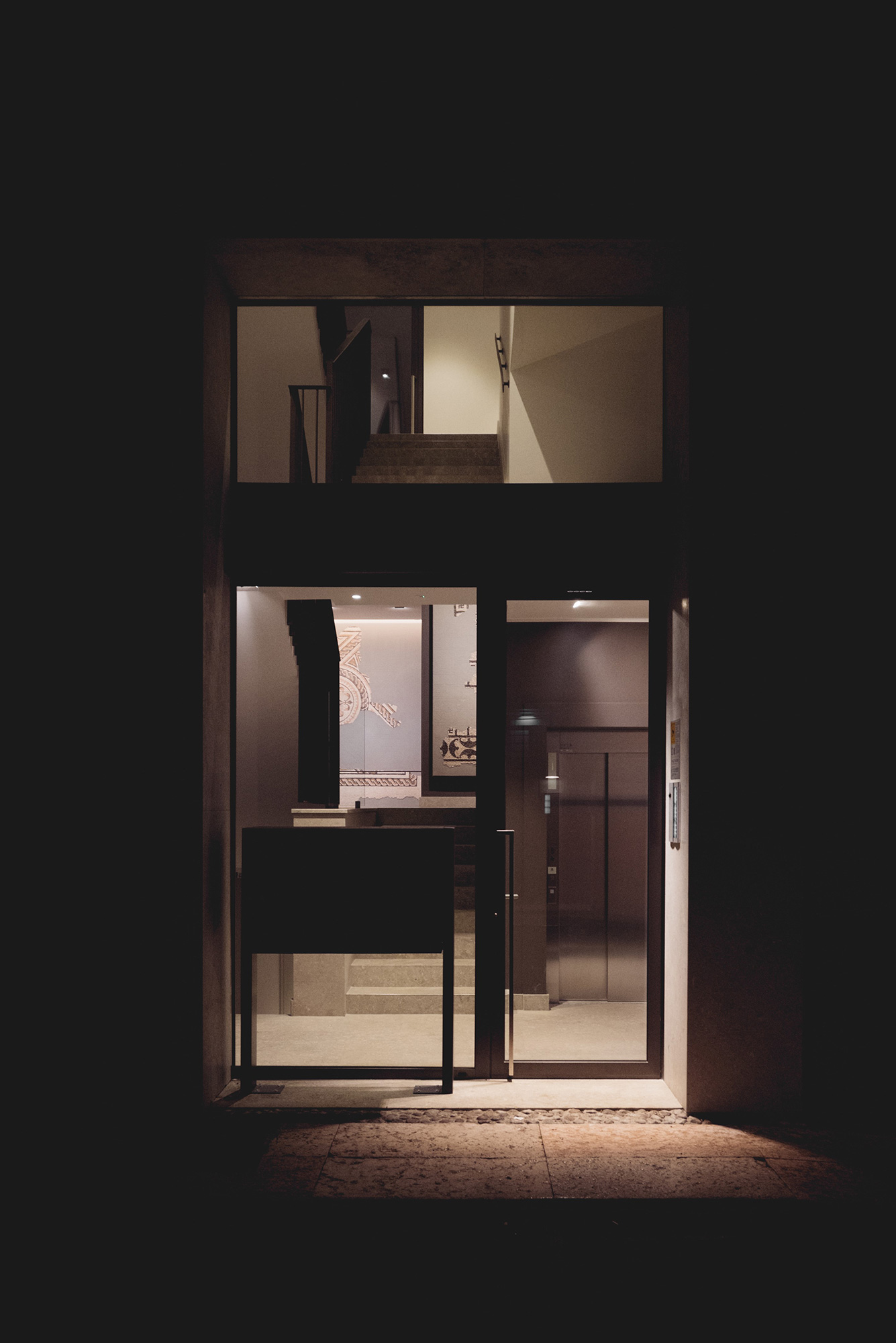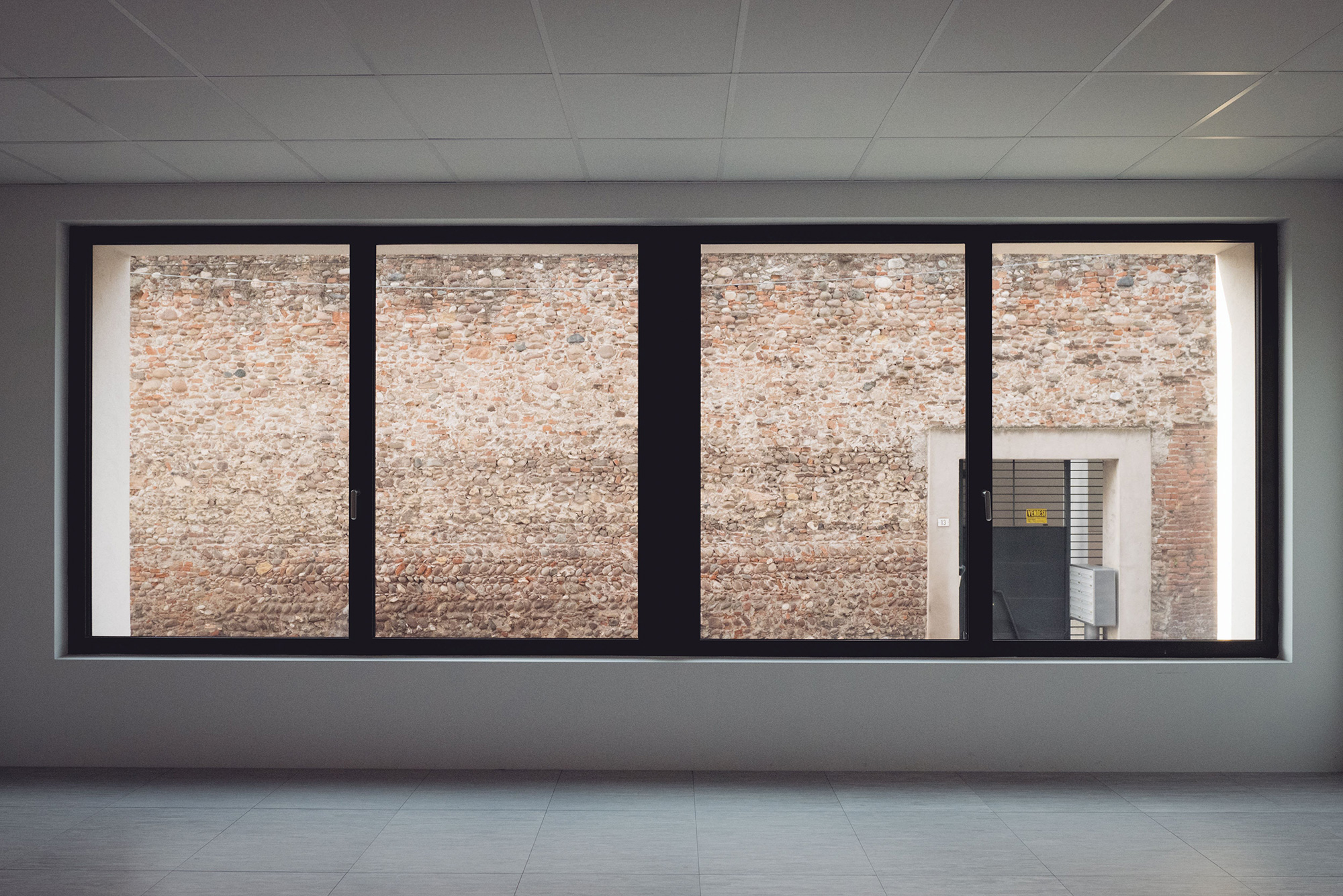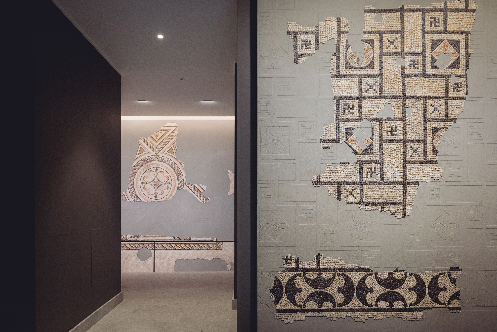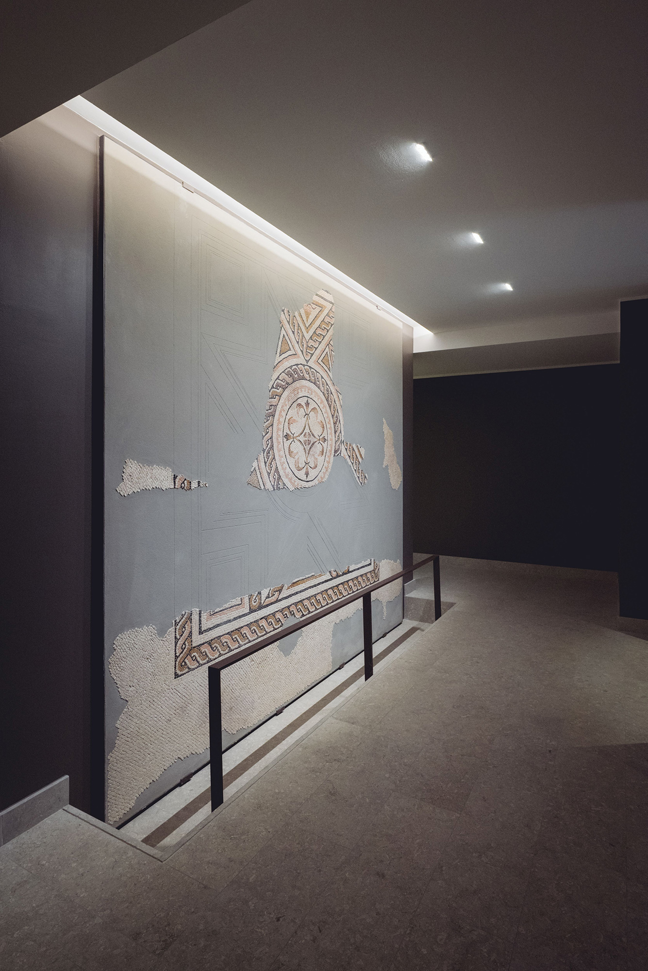 Con la consapevolezza che il presente è una meraviglia perché comprende già tutto il passato, al piano terra del palazzo sono esposte le testimonianze frutto dello scavo archeologico che ha preceduto la costruzione. Lo scavo ha fatto emergere una serie articolata di resti appartenenti ad una domus romana suburbana di cui si sono conservati ampi tratti delle pavimentazioni. Al fine di valorizzare la fruizione dei beni archeologici nel proprio contesto di rinvenimento, si è deciso con la Soprintendenza di collocare le pavimentazioni in sito e di poterle così renderle fruibili alla visita pubblica.