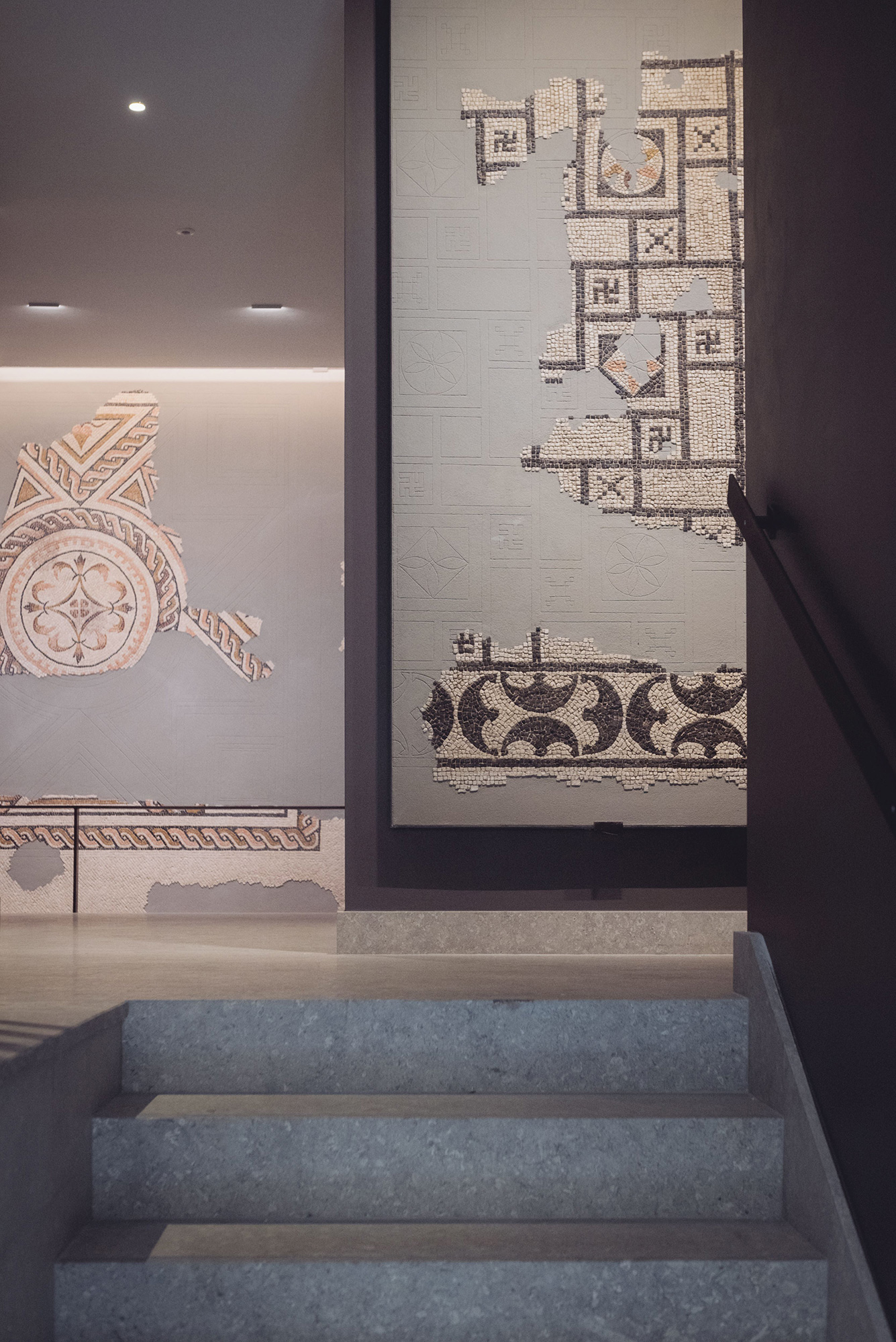 I pavimenti di età romana esposti provengono dallo scavo archeologico che ha preceduto la realizzazione del complesso residenziale “Palazzo Mastino”. Lo scavo, condotto negli anni 2017 – 2018, ha messo in luce le trasformazioni che caratterizzarono, nel corso della storia, l’area in cui sorge l’edificio, a partire dalla prima età imperiale fino all’età moderna. Particolarmente importanti si sono rivelati i resti di una o più domus suburbane di cui si erano conservati ampi tratti delle pavimentazioni. Per favorire la conoscenza storica e archeologica dell’area in cui oggi sorge il Palazzo si è deciso di esporre le pavimentazioni all’interno dello spazio condominiale. Tale scelta, supportata da un innovativo accordo pubblico-privato, è sembrata il modo migliore per garantire la valorizzazione e fruizione delle testimonianze archeologiche nel luogo stesso del rinvenimento.