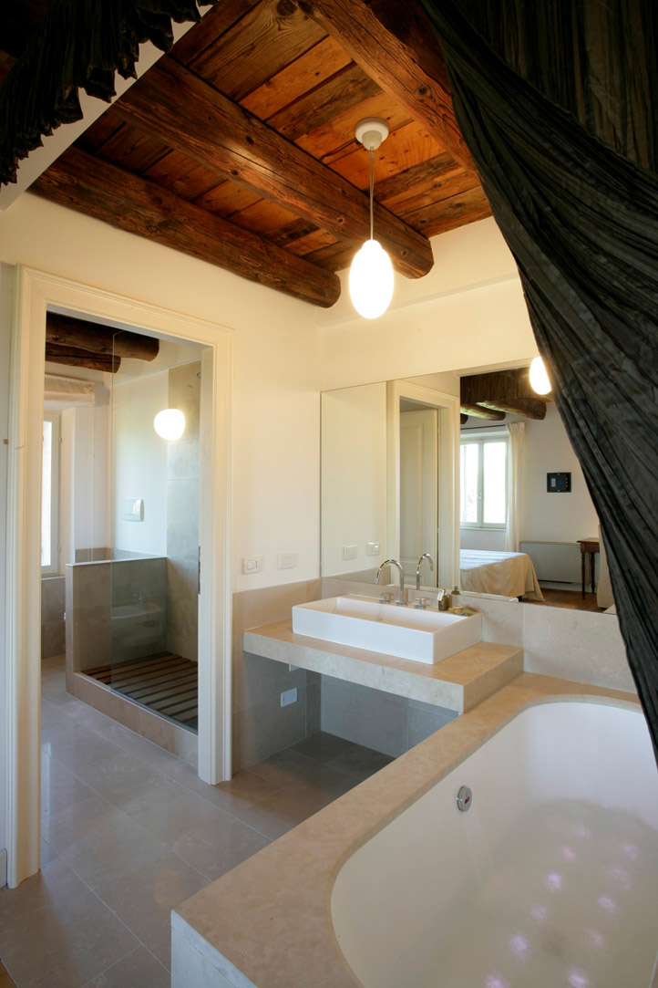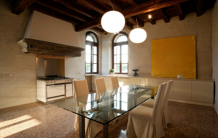 Il relais Corte Guastalla è stato ricavato all’interno della ex casa fattore di una grande corte rurale le cui parti più antiche risalgono al 1400. Nel restauro sono stati materiali utilizzati locali e “morbidi”, come le finiture delle pareti trattate con intonaco a calce e crete del luogo. Nella grande corte è stato reintrodotto l’antico giardino con orto, tipico delle corti rurali venete. Nell’area esterna sono state realizzate la piscina e la zona a parco valorizzando un piccolo torrente d’acqua che scorre ai margini della proprietà.